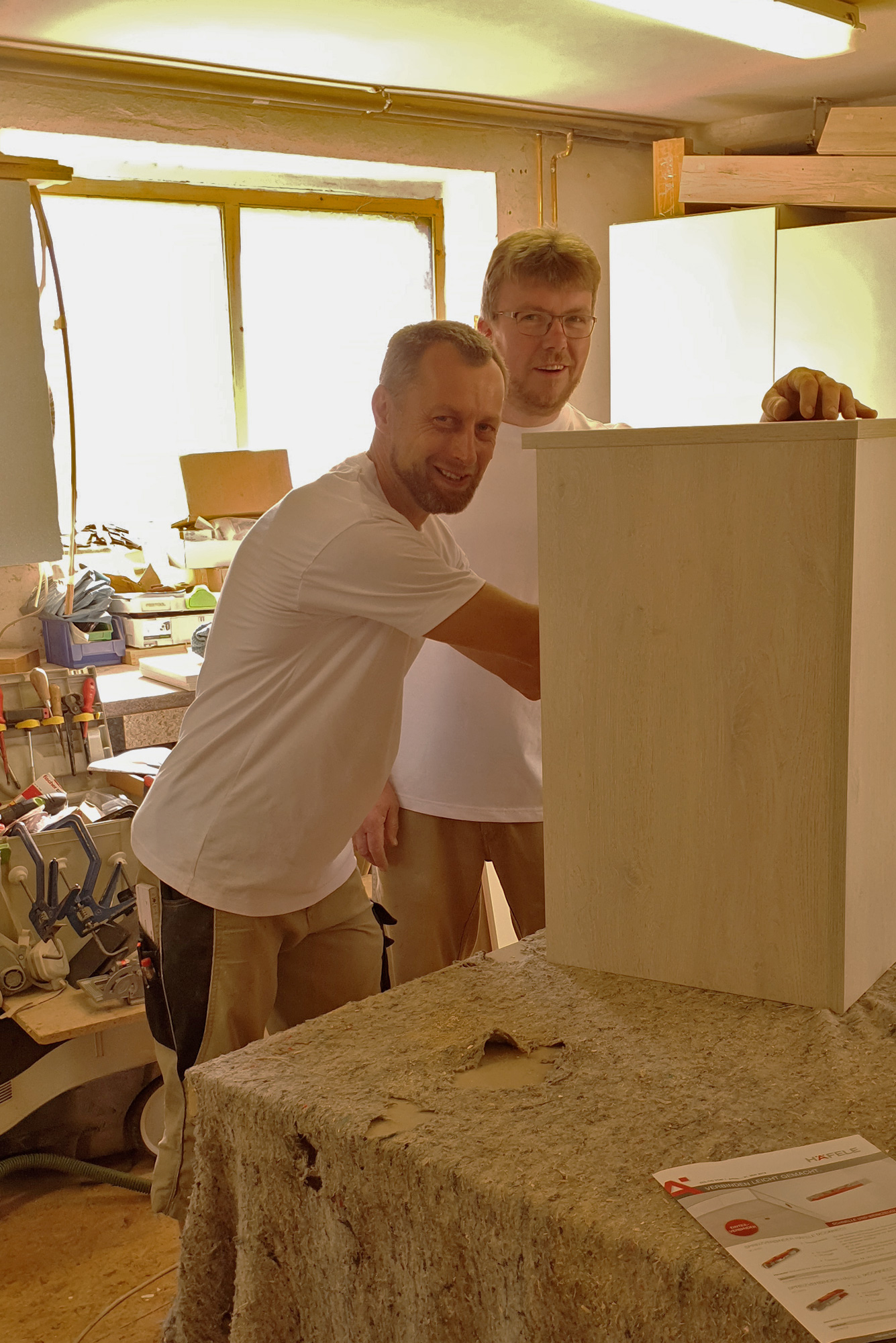 In unserem Unternehmen arbeiten drei Tischlermeister und ein Tischler die in der 200 qm großen Tischlerei sämtliche Möbelwünsche für sie umsetzen können. Im Küchenbereich ermöglichen wir so auch Sonderanfertigungen außerhalb der industriellen Rastermaße.